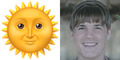 The dense eyebrows, blushed cheeks and the matching smile all remind strongly of the original emoji.